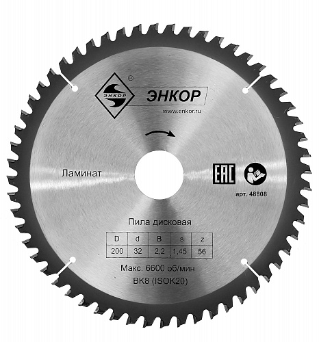Купить диск пильный по ламинату (200x32 z56) энкор 48808 с бесконтактной доставкой в Новосибирске и Новосибирской области оптом и в розницу. Цена : 1172.00 руб, а также акции и скидки в интернет-магазине Инструментовоз.
